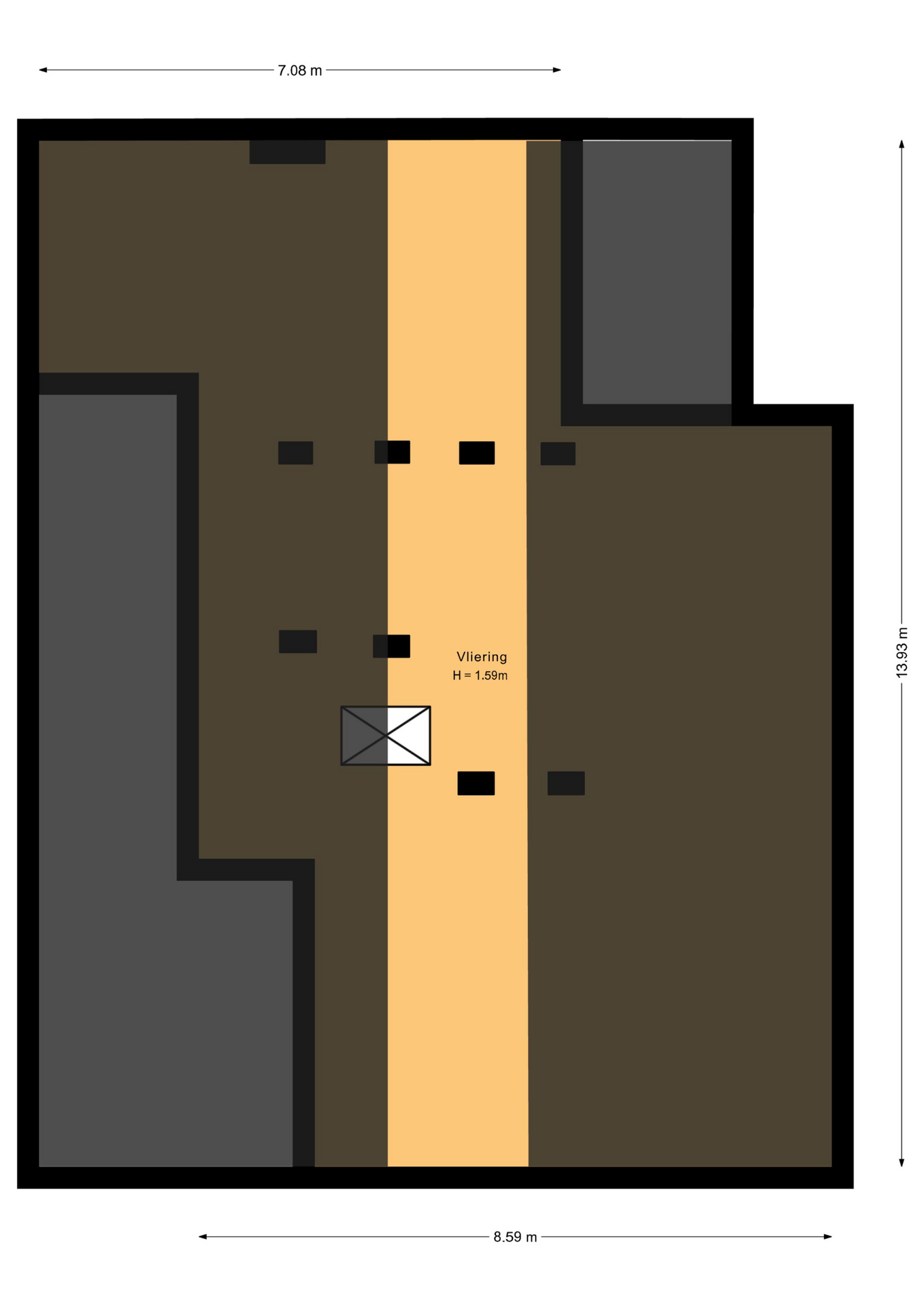 Hierboven een royale vliering middels vlizotrap te bereiken.