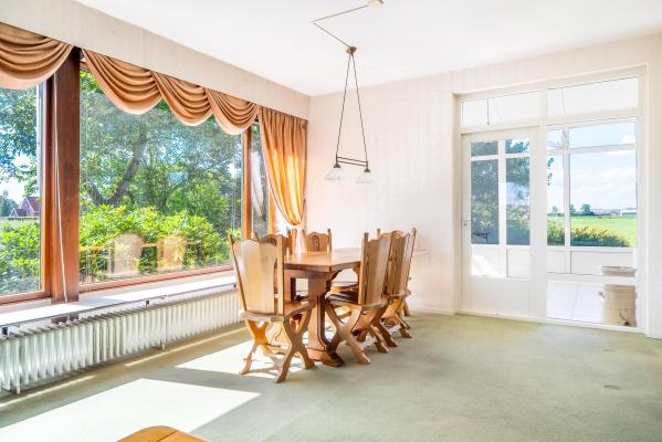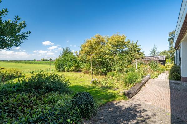 De bungalow, gebouwd in de jaren ’60, verkeert in een goede staat en is gelegen op een riant perceel van maar liefst ca. 1.800 m². Bij binnenkomst via de hal betreedt u de lichte en ruime woonkamer, compleet met sfeervolle houtkachel en serre, waar u volop kunt genieten van het vrije uitzicht. De dichte keuken bevindt zich in de directe nabijheid. Daarnaast beschikt de woning over drie slaapkamers en een badkamer. Via de hal bereikt u ook de inpandige garage. Doordat alle voorzieningen zich op de begane grond bevinden, is deze woning bijzonder geschikt voor levensloopbestendig wonen. De tuin rondom biedt volop mogelijkheden om te ontspannen. De hoofdtuin ligt op het zuidwesten en is ingericht met gazon, volwassen beplanting en diverse zitplekken. Hier kunt u in alle rust genieten van het vrije uitzicht en de prachtige omgeving.