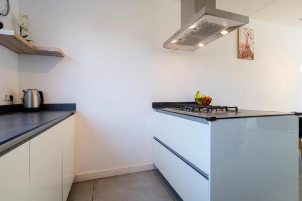 Entree/hal, wandcloset met fonteintje, tuingerichte living met schuifpui en moderne open keuken met kookeiland voorzien van gaskookplaat, afzuigkap, quooker, combi-oven, ingebouwde koffiezetapparaat, inbouwkoelkast en vaatwasser.