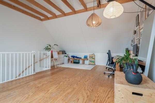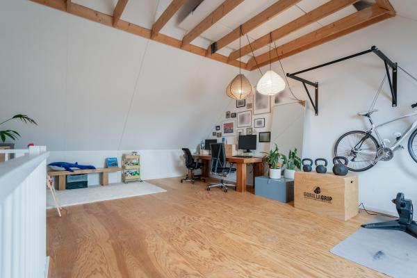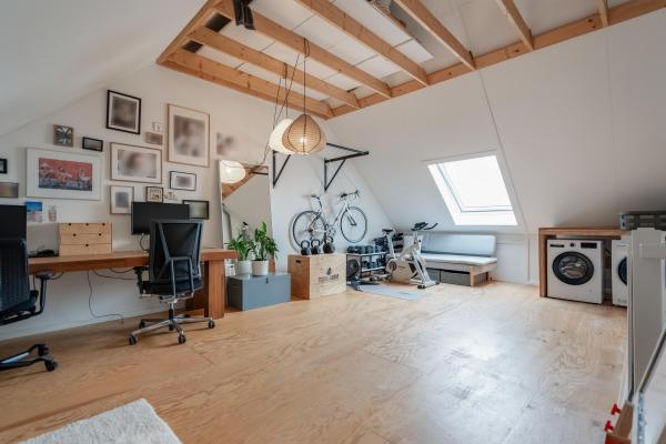 Ruime multifunctionele ruimte, nu in gebruik als werkkamer/sportkamer met witgoedaansluiting.