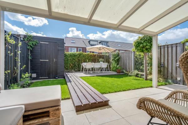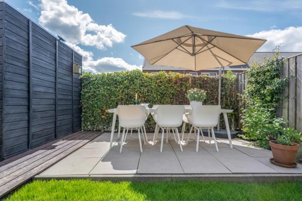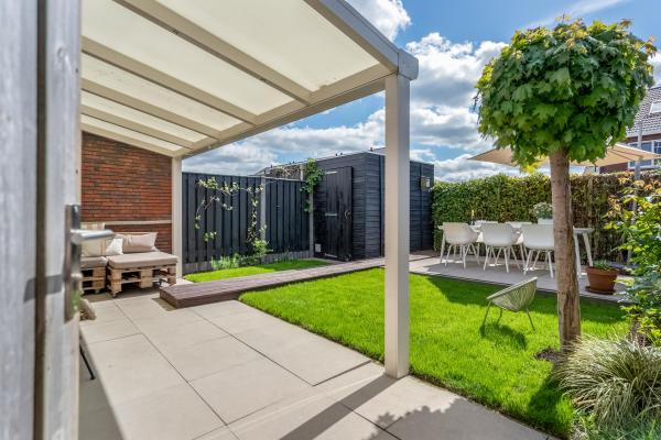 Heerlijke onderhoudsarme tuin op het zuiden met achterom