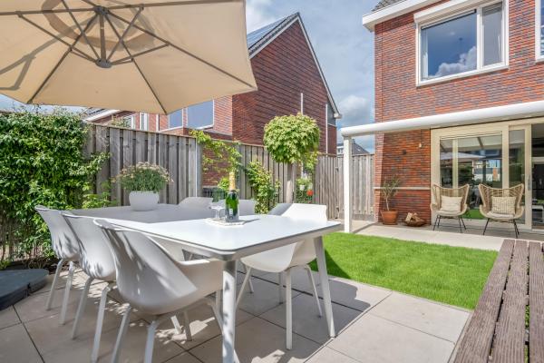 Moderne instapklare hoekwoning uit 2017 met warmtepomp en tuin op het zuiden, gelegen in een groene kindvriendelijke woonwijk in Haren!