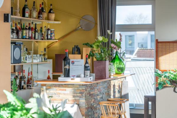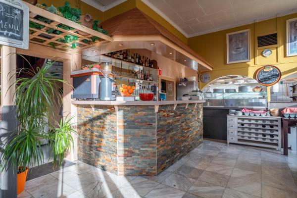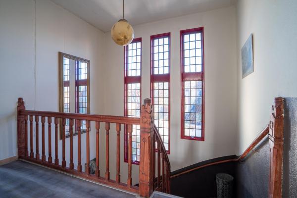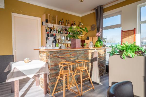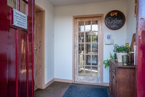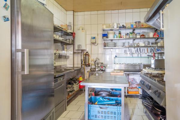 Entree/tochtportaal, toiletruimte met toilet, urinoir en wastafel, hal met trapopgang met prachtige glas en lood ramen, restaurant met bar en half open keuken voorzien van diverse keukenapparatuur.
