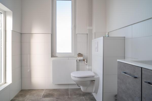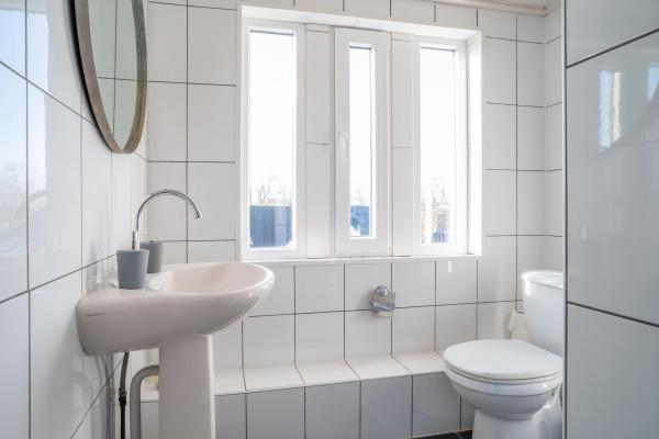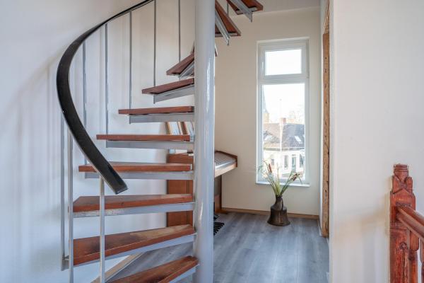 Overloop, royale multifunctionele ruimte, 2 slaapkamers (mogelijkheid voor 3), bijkeuken, badkamer met douche, wastafel en toilet.