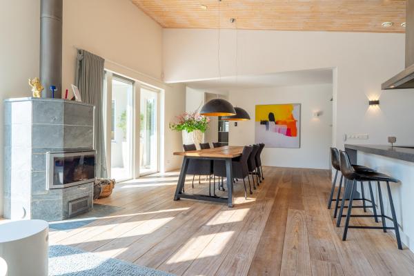 Op populaire locatie nabij het centrum van Eelde en Paterswolde gelegen Zweedse design villaDeze charmante villa uit 2006 combineert comfort, stijl en duurzaamheid op een unieke manier. De woning is volledig gelijkvloers ingedeeld, met een royale en speels vormgegeven living waar het zit- en eetgedeelte mooi in elkaar overlopen. De open, moderne keuken sluit hier perfect op aan en vormt het hart van het huis. Aansluitend is er een gezellige hoek ingericht die zich uitstekend leent als werkplek of thuiskantoor. Verder beschikt de villa over drie comfortabele slaapkamers en twee nette badkamers op de begane grond – ideaal voor gezinnen, stellen die van ruimte houden, of wie toekomstgericht en levensloopbestendig wil wonen. Op de bovenverdieping vindt u nog een vierde slaapkamer én een royale bergruimte. Wat deze woning extra bijzonder maakt, is het hoge afwerkingsniveau en de uitstekende isolatie. Dankzij de hoogwaardige wand-, vloer- en dakisolatie, drievoudig glas met gasvulling en zonnecollectoren heeft de woning energielabel A++ – energiezuinig én comfortabel dus. De fraai aangelegde tuin ligt aan de achterzijde, op het westen. Een beschutte plek met terras en gazon, waar u in alle rust van de middag- en avondzon kunt genieten. Daarnaast zijn er een aangebouwde berging en garage aanwezig, die niet alleen ideaal zijn voor opslag en het stallen van een auto, maar ook uitstekend geschikt zijn voor een ruimtevragende hobby