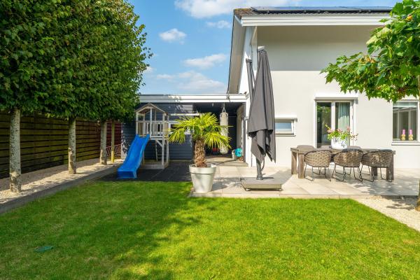 Deze charmante villa uit 2006 combineert comfort, stijl en duurzaamheid op een unieke manier. De woning is volledig gelijkvloers ingedeeld, met een royale en speels vormgegeven living waar het zit- en eetgedeelte mooi in elkaar overlopen. De open, moderne keuken sluit hier perfect op aan en vormt het hart van het huis. Aansluitend is er een gezellige hoek ingericht die zich uitstekend leent als werkplek of thuiskantoor. Verder beschikt de villa over drie comfortabele slaapkamers en twee nette badkamers op de begane grond – ideaal voor gezinnen, stellen die van ruimte houden, of wie toekomstgericht en levensloopbestendig wil wonen. Op de bovenverdieping vindt u nog een vierde slaapkamer én een royale bergruimte. Wat deze woning extra bijzonder maakt, is het hoge afwerkingsniveau en de uitstekende isolatie. Dankzij de hoogwaardige wand-, vloer- en dakisolatie, drievoudig glas met gasvulling en zonnecollectoren heeft de woning energielabel A++ – energiezuinig én comfortabel dus. De fraai aangelegde tuin ligt aan de achterzijde, op het westen. Een beschutte plek met terras en gazon, waar u in alle rust van de middag- en avondzon kunt genieten. Daarnaast zijn er een aangebouwde berging en garage aanwezig, die niet alleen ideaal zijn voor opslag en het stallen van een auto, maar ook uitstekend geschikt zijn voor een ruimtevragende hobby