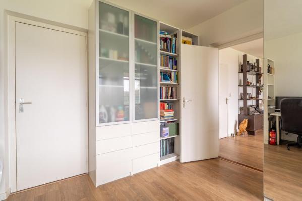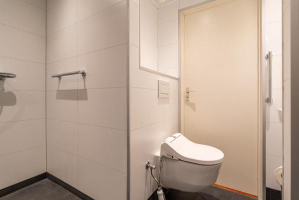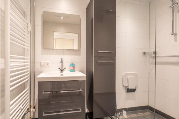 Entree/hal met garderobe, modern toilet, lichte woonkamer (ca. 28 m²) met toegang tot het eerste balkon, eet-/werkkamer (ca. 22 m²) met toegang tot het tweede balkon, ruime slaapkamer (ca. 22 m²) met vaste kasten en toegang tot de luxe badkamer met douchehoek en wastafel.