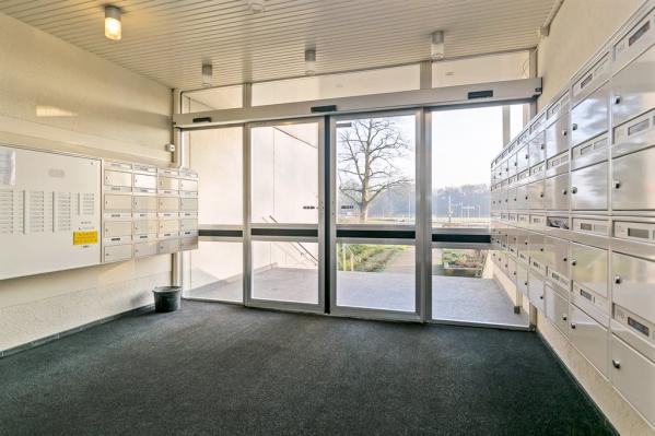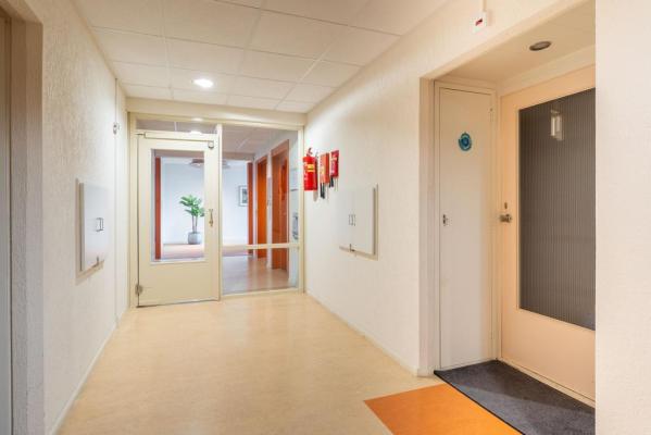 Via de centrale ingang op de begane grond met intercom en balie kan men zowel met de trap als met de lift naar de 3e woonlaag.
