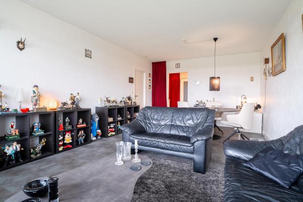 Entree/hal met toilet, nette halfopen keuken voorzien van enige inbouwapparatuur, lichte woonkamer (ca. 28 m²), ruime slaapkamer (ca. 22 m²), keurige badkamer met douche, wastafelmeubel en witgoedaansluiting. Vanuit zowel de woonkamer als de slaapkamer heeft u toegang tot het balkon.