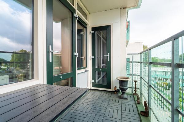 Op een fraaie locatie op de 4e woonlaag aan de voorzijde van het complex gelegen, goed onderhouden 2-kamer appartement van ca. 70 m² met inpandige berging en fraai uitzicht over de weg, bossen en het Paterswoldsemeer.