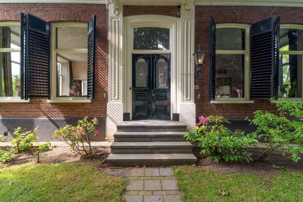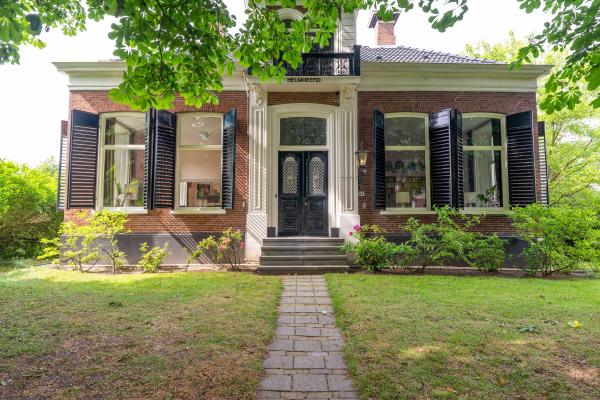 Dit fraaie toonbeeld van de Eclectische bouwstijl is aangemerkt als Rijksmonument met dito voordelen. Het perceel van 4.970 m2 biedt een pad naar de voordeur tussen prachtige eikenbomen door. De achtertuin biedt aan haar bewoners een dubbele garage met naastgelegen carport, een boomgaard en meerdere gazonnen. Het perceel is groen omzoomd en beschikt over de zijkant over een oprit om achter de woning te kunnen parkeren.