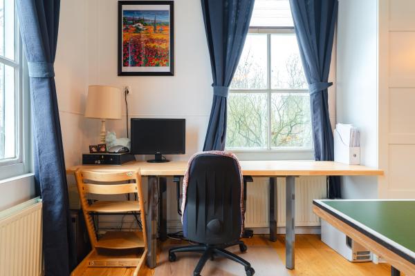 Halverwege de begane grond betreedt u het achterhuis alwaar zich nog 2 riante multifunctionele kamers bevinden. Deze zijn nu als slaap- en hobbykamers in gebruik maar kunnen ook goed dienen als kantoor aan huis.