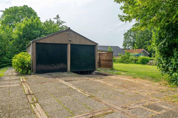 Achter de woning bevindt zich een vrijstaande dubbele garage van 38 m2 met hiernaast een carport. De rechterzijde van de garage is verdiept zodat het ook zeer goed mogelijk is om hier een camper of caravan te parkeren.