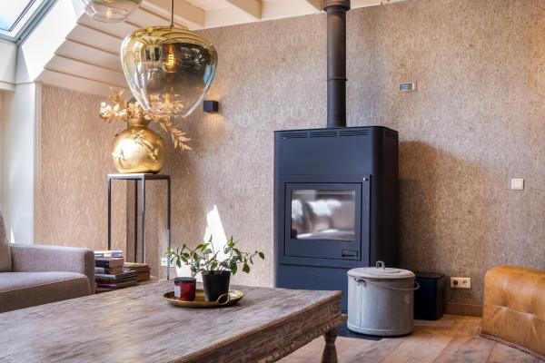 Hout-cv kachel met 1000 liter buffervat aangesloten op vloerverwarming