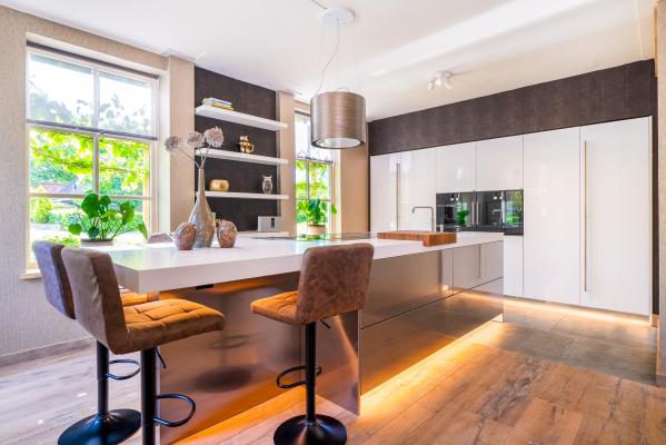 Design-woonkeuken voorzien van Gaggenau inbouwapparatuur