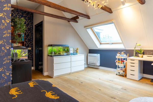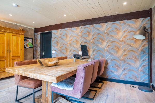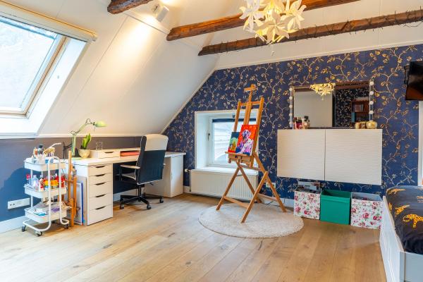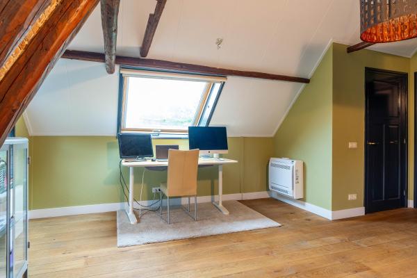 De woning heeft voorts nog een ruime werkkamer op de begane grond, direct benaderbaar vanuit de centrale hal waardoor het geheel ook zeer geschikt is voor het houden van een praktijk of bedrijf aan huis. Opdrachtgevers c.q. klanten hoeven niet door de hele woning wanneer ze langskomen. Omdat achter de werkkamer al een douche zit, is deze vleugel ook geschikt als slaapkamer met badkamer en/of als mantelzorgruimte of voor dubbele bewoning.