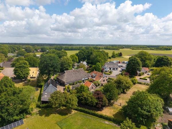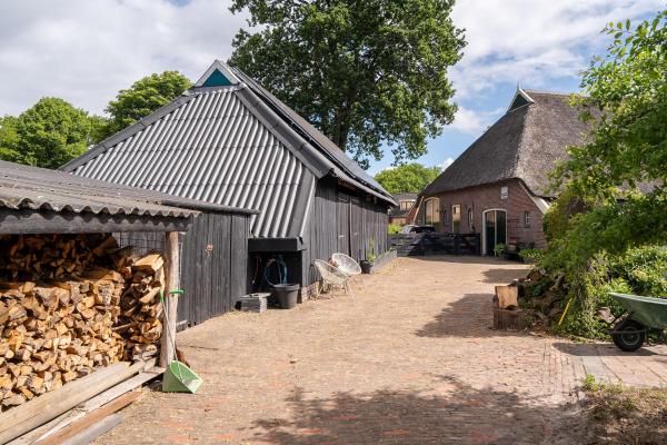 Op het erf staan naast de boerderij nog diverse bijgebouwen zoals een bak huisje, een gastenverblijf (in renovatie), een kapschuur met carport voor 2 auto’s (te bereiken via aparte oprijlaan), een schuur voor houtopslag met daarbij een sfeervolle open veld schuur met houtkachel.