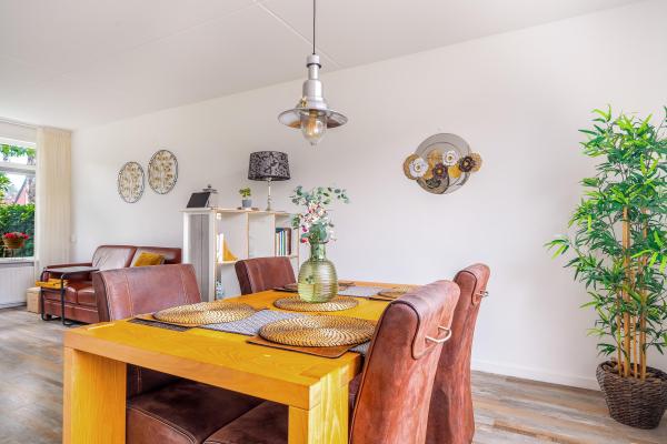 In een kindvriendelijke buurt gelegen goed onderhouden gezinswoning met 4 slaapkamers en energielabel A+!Deze tussenwoning, gebouwd in de jaren ’70, heeft een prettige en functionele indeling. Via de hal komt u binnen in de lichte en ruime woonkamer. De aangrenzende dichte keuken is licht en is verbonden met een praktische bijkeuken. Op de eerste verdieping bevinden zich vier slaapkamers en een nette badkamer. Extra bergruimte? Geen probleem! De bergvliering biedt voldoende plek om spullen netjes op te bergen. De afgelopen jaren is er flink geïnvesteerd in duurzaamheid. Denk aan muurisolatie, grotendeels kunststof kozijnen, dakisolatie, maar ook 10 zonnepanelen én een thuisbatterij om de opgewekte zonne-energie optimaal te benutten. Het resultaat: energielabel A+ en lage energielasten! De onderhoudsvriendelijke achtertuin is gelegen op het noordwesten, waardoor u heerlijk kunt genieten van de middag- en avondzon. In de tuin vindt u tevens een praktische stenen berging en een achterom. Parkeren doet u eenvoudig voor de deur!