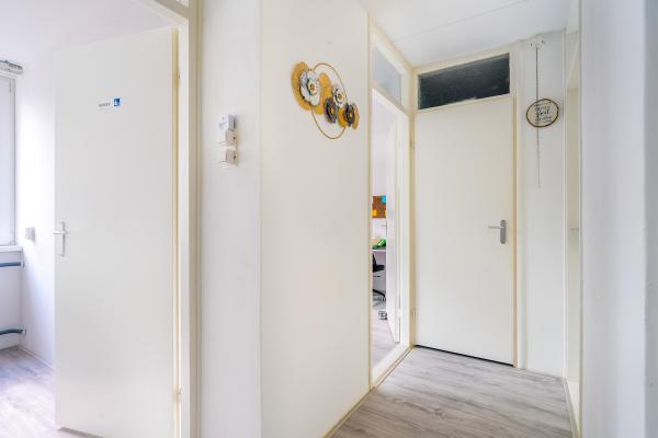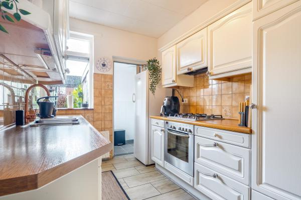 Deze tussenwoning, gebouwd in de jaren ’70, heeft een prettige en functionele indeling. Via de hal komt u binnen in de lichte en ruime woonkamer. De aangrenzende dichte keuken is licht en is verbonden met een praktische bijkeuken. Op de eerste verdieping bevinden zich vier slaapkamers en een nette badkamer. Extra bergruimte? Geen probleem! De bergvliering biedt voldoende plek om spullen netjes op te bergen. De afgelopen jaren is er flink geïnvesteerd in duurzaamheid. Denk aan muurisolatie, grotendeels kunststof kozijnen, dakisolatie, maar ook 10 zonnepanelen én een thuisbatterij om de opgewekte zonne-energie optimaal te benutten. Het resultaat: energielabel A+ en lage energielasten! De onderhoudsvriendelijke achtertuin is gelegen op het noordwesten, waardoor u heerlijk kunt genieten van de middag- en avondzon. In de tuin vindt u tevens een praktische stenen berging en een achterom. Parkeren doet u eenvoudig voor de deur!