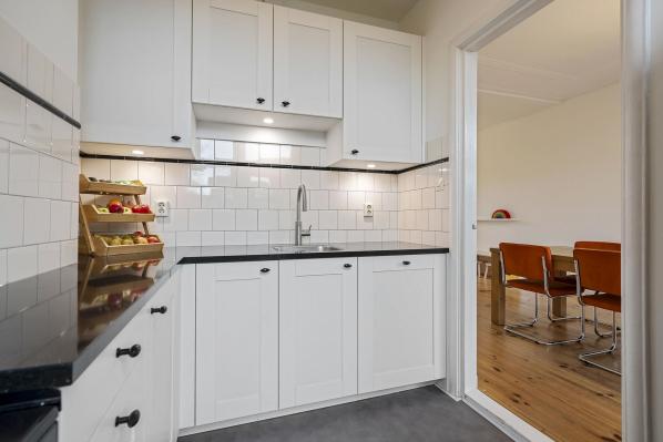 De dichte keuken is uitgerust met een luxe dubbel gasfornuis met twee ovens (ATAG), afzuigkap, Quooker, vaatwasser en een losse koel-vriescombinatie. Aan de achterzijde van de woning is een royaal balkon gelegen op het oosten.