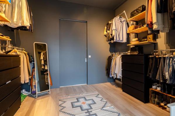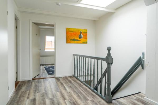 Overloop, toilet met fonteintje, 3 slaapkamers (4 mogelijk), waarvan de slaapkamer aan de achterzijde is voorzien van een inloopkast, badkamer met douche, vrijstaand bad en wastafelmeubel.