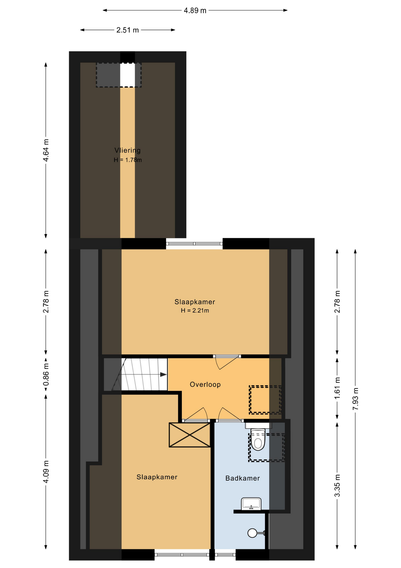 Hierboven een bergvliering middels vlizotrap te bereiken.