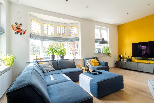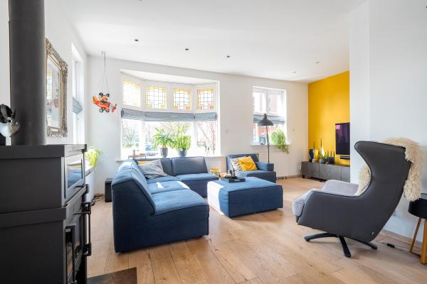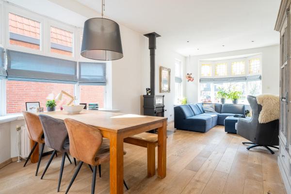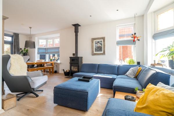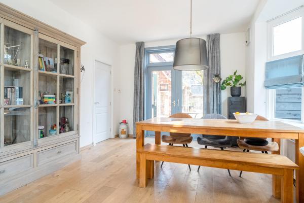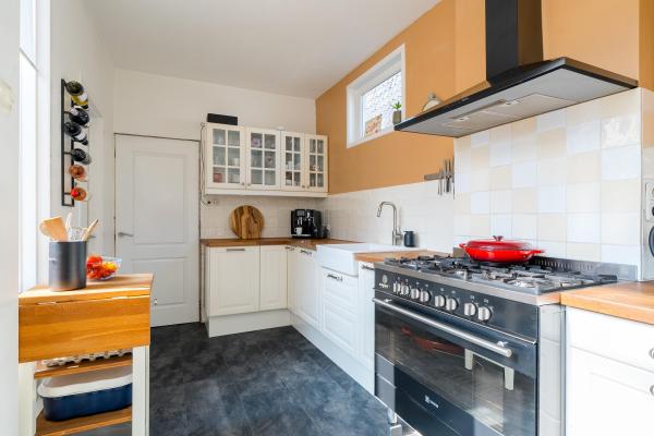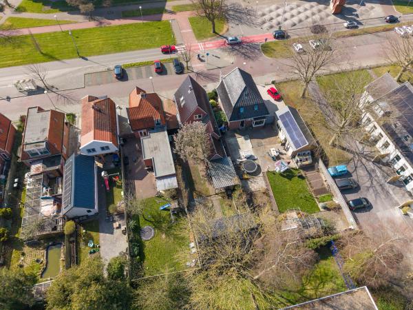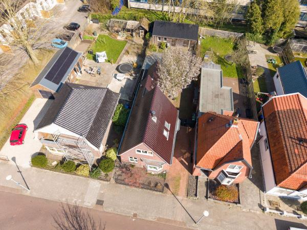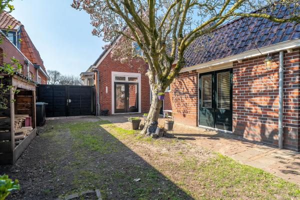 Dit charmante huis uit de jaren '30 heeft in 2005 een uitbouw aan de achterzijde gekregen, waardoor er op de begane grond een extra slaapkamer en badkamer zijn gecreëerd. Bij binnenkomst via de hal komt u in een sfeervolle woonkamer met twee erkers, een gezellige houtkachel en openslaande deuren naar de achtertuin. De begane grond biedt daarnaast een dichte keuken en een slaapkamer met aangrenzende badkamer. Op de eerste verdieping bevinden zich nog twee slaapkamers en een tweede badkamer. De indeling maakt het huis geschikt voor een gezin dat waarde hecht aan privacy, maar ook voor levensloopbestendig wonen. De ruime achtertuin op het noordoosten is maar liefst 27 meter diep en 10 meter breed, waardoor er volop zon en privacy is. Via de oprit is de grote schuur met twee carports bereikbaar, en aan de zijkant van het huis is ruimte om twee auto's te parkeren.