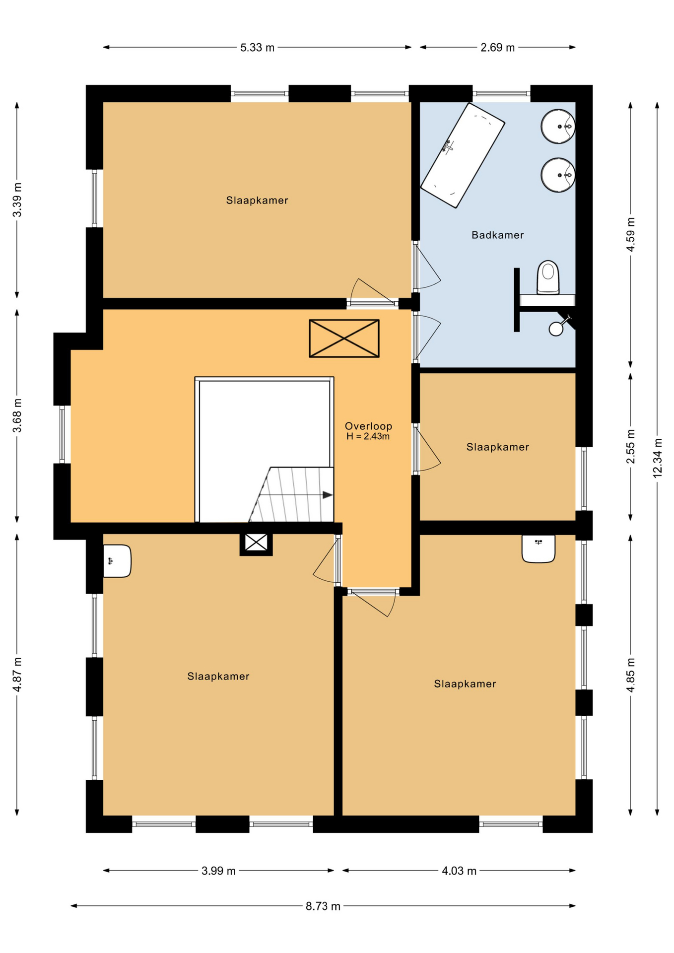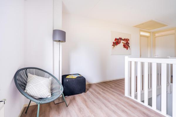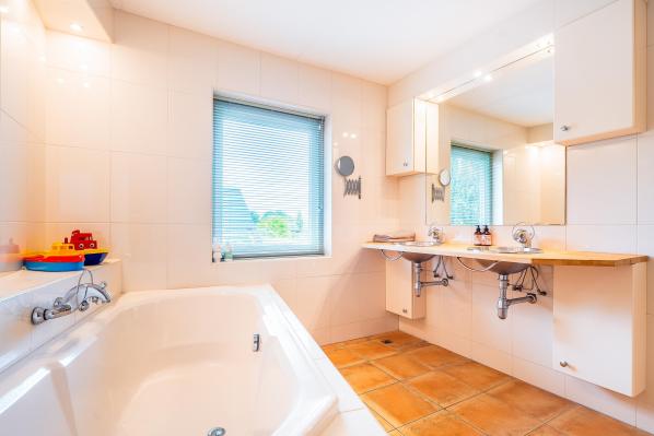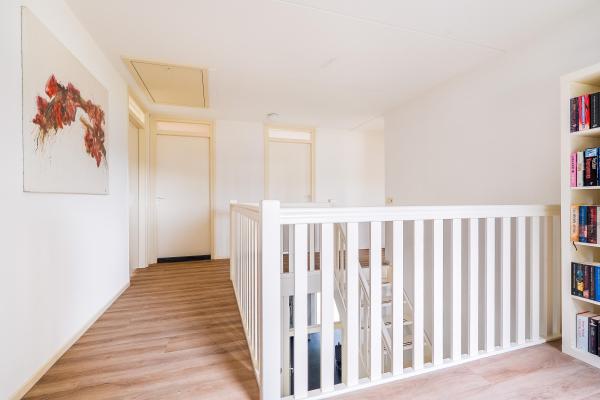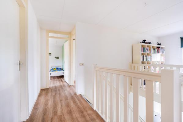 Lichte overloop met, indien gewenst, ruimte voor een leeshoek of werkplek. Vanaf de overloop heeft u toegang tot vier ruime slaapkamers en een tweede badkamer met inloopdouche, ligbad, dubbele wastafel en toilet.