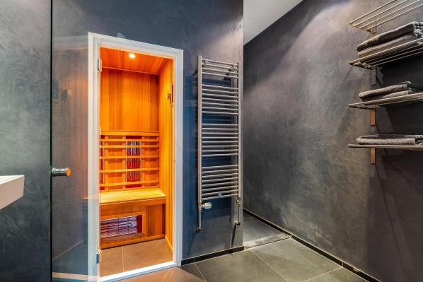 Ligbad, Toilet, Dubbele Wastafel, Inloopdouche, Douche, Sauna