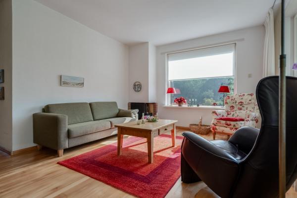 Entree/hal met trapopgang en trapkast, toilet met fonteintje, U-vormige living met open haard en deur naar de tuin, open keuken voorzien van diverse inbouwapparatuur, bijkeuken. Vanuit de hal is tevens de werkkamer te bereiken.
