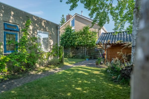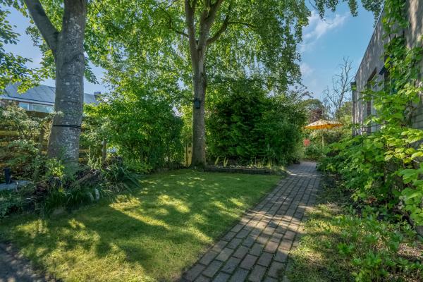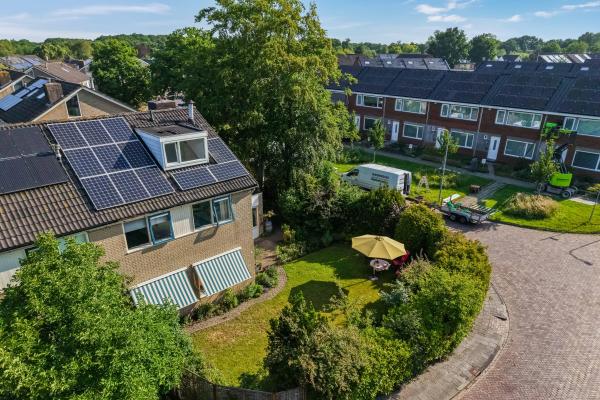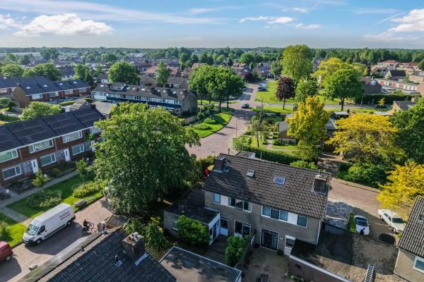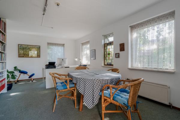In een rustige en kindvriendelijke woonwijk aan de rand van het levendige dorp Roden staat deze verrassend ruime 2 onder 1 kapwoning met maar liefst vijf slaapkamers en riante werkkamer, een vrijstaande garage en een heerlijke groene tuin rondom.Deze goed onderhouden woning biedt volop mogelijkheden. De woning is royaal van opzet, praktisch ingedeeld en door de jaren heen netjes bewoond. Bij binnenkomst komt u via de hal in de gezellige woonkamer met sfeervolle open haard, eetgedeelte en een open keuken. Een bijzonder pluspunt is de extra kamer op de begane grond. Ideaal als thuiskantoor, hobbyruimte of zelfs als slaapkamer. Er is zelfs voldoende ruimte om hier desgewenst een badkamer bij te realiseren, wat de woning levensloopbestendig maakt. Op de eerste verdieping bevinden zich drie lichte slaapkamers en een badkamer. De tweede verdieping biedt nog eens twee extra kamers. Met in totaal vijf kamers is er ruimte genoeg voor een groot gezin, werken aan huis of logees. Rondom de woning ligt een fraai aangelegde tuin met diverse zitplekken. Dankzij de volwassen beplanting geniet u hier van veel privacy, rust en groen. Achterin de tuin vindt u een vrijstaande berging en een ruime stenen garage. Aan de zijkant van de woning is bovendien een eigen oprit voor 2 auto's aanwezig.