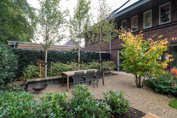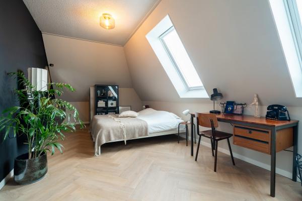 Deze riante woning is gebouwd in de sfeervolle jaren ’30-stijl die zo kenmerkend is voor Haren. Dankzij het royale dakoverstek en de stijlvolle architectuur heeft het huis een karakteristieke uitstraling, maar mét de luxe en wooncomfort van nu. Bij binnenkomst valt direct de lichte en ruime living op met een gezellige zithoek met tv-meubel en de luxe open keuken met kookeiland. De woning heeft op alle woonlagen vloerverwarming met koeling en is afgewerkt met een fraaie PVC-visgraatvloer. Op de begane grond bevindt zich bovendien een extra kamer die ideaal is als werkkamer of speelruimte. De eerste verdieping beschikt over twee slaapkamers, waarvan één eenvoudig is op te delen en een moderne badkamer met inloopdouche en vrijstaand bad. Op de tweede verdieping vindt u nog twee slaapkamers, waarvan de grootste eenvoudig is op te delen en een werkkamer die desgewenst kan worden omgebouwd tot tweede badkamer. In totaal zijn er dus 7 slaapkamers te realiseren! De ruime indeling biedt volop mogelijkheden voor gezinnen of stellen die graag de ruimte hebben. De zonnige tuin op het zuidoosten is fraai aangelegd en biedt meerdere zitplekken, deels overdekt en omgeven door volwassen beplanting. Hier geniet u in alle rust van de buitenlucht. Parkeren kan op uw eigen oprit of in de straat.