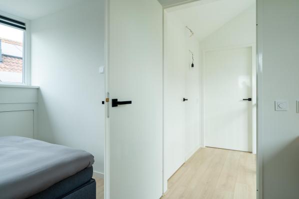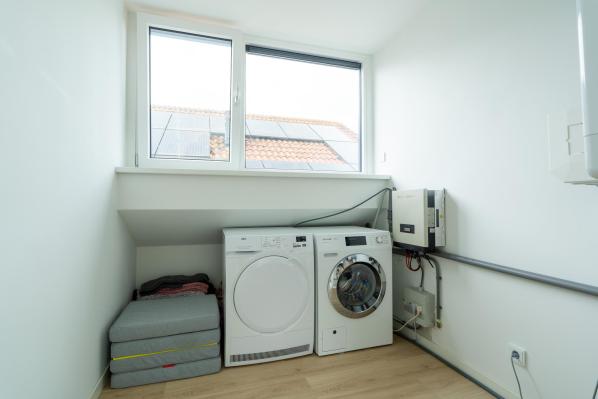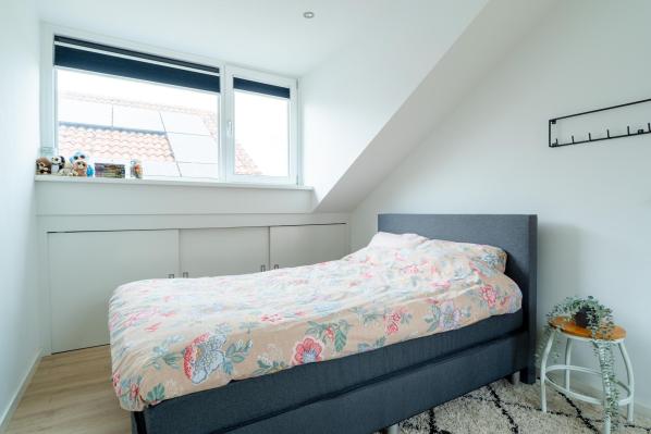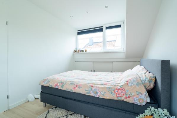 Overloop, 2 slaapkamers met veel bergruimte onder de knieschotten, waarvan één met dakkapel (2021), wasruimte met witgoedaansluiting en cv-opstelling.