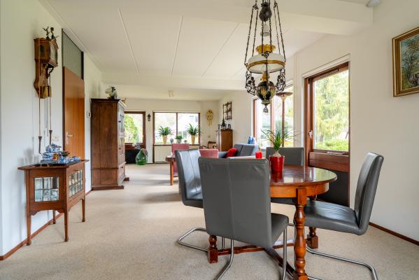 Bij aankomst valt direct de verzorgde, frisse uitstraling op. De woning staat solide en doordacht op zijn plek, met een praktische indeling en een fijne balans tussen binnen en buiten. Binnen treft u een comfortabele leefruimte op de begane grond, waar de lichte woonkamer met dubbele zithoek en eetkamer mooi met elkaar in verbinding staan. Bovendien is aan de zijkant van de woning een garage gerealiseerd van maar liefst 23 vierkante meter. Ideaal als garage, hobbyruimte of als toekomstige slaapkamer op de begane grond waarmee het huis levensloopbestendig is.