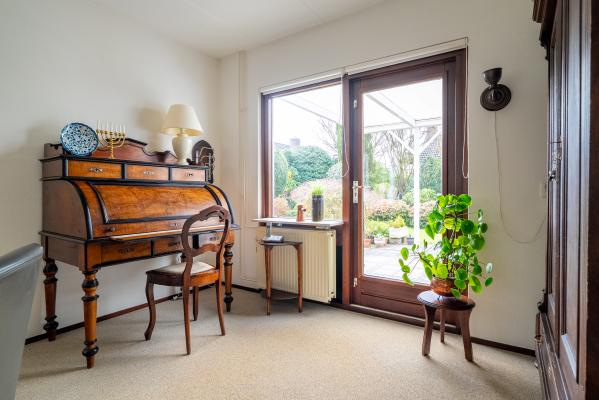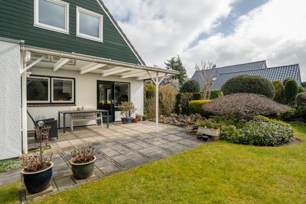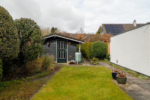 Op de verdieping bevinden zich 3 slaapkamers en een badkamer met ligbad, douche, wastafelmeubel en toilet waardoor het huis geschikt is voor zowel gezinnen als mensen die ruimte zoeken om te werken of hobby’s uit te oefenen. Tot slot is er nog een vliering aanwezig voor extra bergruimte. Met een gebruiksoppervlakte wonen van circa 136 m² en een inhoud van circa 597 m³ biedt de woning een prettige hoeveelheid ruimte en mogelijkheden. Het perceel van 745 m2 is zonnig en biedt volop privacy, met voldoende ruimte om te ontspannen, te spelen of te tuinieren. Rondom de woning ligt een verzorgde en zonnige tuin met veel privacy. De tuin biedt diverse mogelijkheden om te genieten van het buitenleven, met zowel zon- als schaduwplekken.