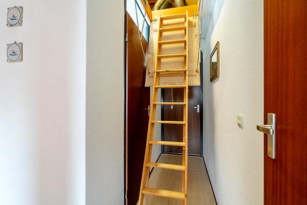 Via een vlizotrap bereikbare bergzolder (vliering), geschikt voor het opbergen van seizoensspullen en overige zaken.