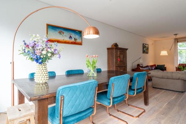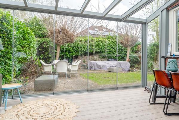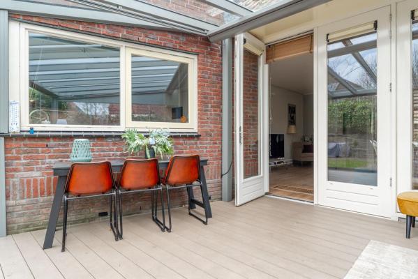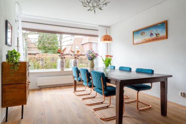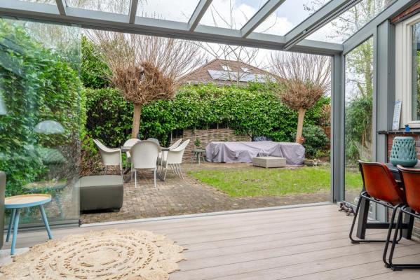 Dit riante gezinshuis is onder architectuur gebouwd in 2001 en belichaamt de kenmerkende stijl van de jaren dertig met zijn dakoverstek, tuindeuren en dakkapellen. Bij binnenkomst wordt u verwelkomd door een lichte tuingerichte woonkamer met openslaande deuren naar de onlangs aangebouwde serre en een moderne halfopen keuken die in 2021 is gerenoveerd. Op de twee verdiepingen erboven bevinden zich vier volwaardige slaapkamers en een volledig geoutilleerde badkamer. Dit huis is hierdoor dan ook zeer geschikt voor een gezin met kinderen, maar ook voor een stel dat aan huis zou willen werken, of dat van ruim wonen houdt. Aan de achterzijde bevindt zich de prachtige serre, waar u het hele jaar door kunt genieten, met o.a. een ruime schuifpui. Deze tuinkamer fungeert als een naadloze verbinding tussen uw huis en de besloten tuin. Over het parkeren van uw auto hoeft u niet snel druk te maken bij deze woning. U heeft namelijk een eigen oprit met plek voor meerdere auto’s alsmede een oplaadpunt voor een elektrische auto. Daarnaast is er in deze rustige woonwijk ook voldoende openbare parkeergelegenheid.