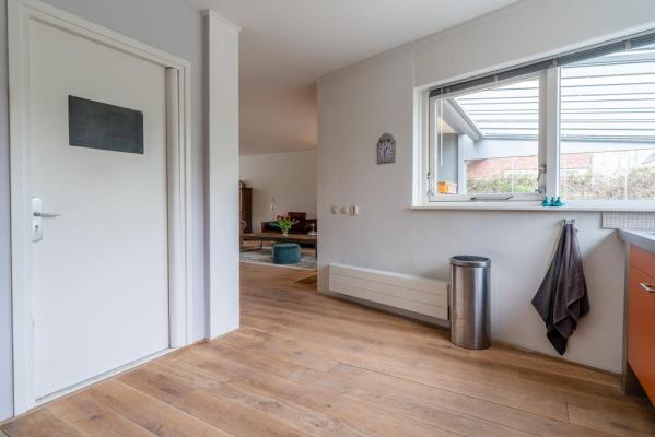 Entree/hal met trapopgang, wandcloset met fonteintje, woonkamer met serre, moderne halfopen keuken voorzien van diverse inbouwapparatuur.