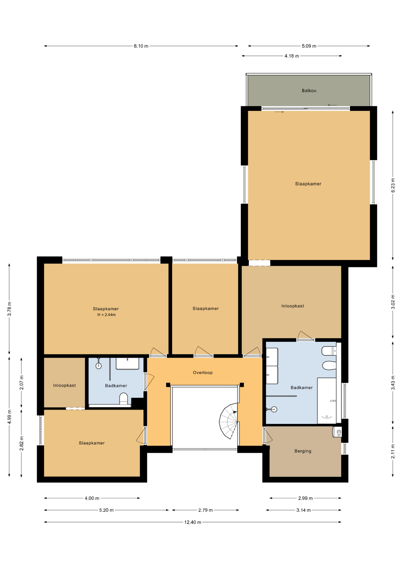 Lichte overloop met vide en lichtstraat, 4 slaapkamers, waarvan de master bedroom met naastgelegen moderne badkamer, 2e badkamer met inloopdouche, toilet en vaste wastafel, berging met cv-opstelling.