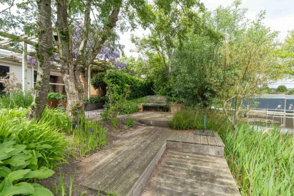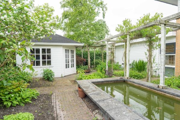 Dit fraaie huis is gelegen op een riant perceel van 916 m² met een eigen steiger aan het achterliggende water. U springt vanuit de tuin zo voor een verfrissende duik het water in. Het huis is riant, keurig onderhouden en is voor veel doelgroepen geschikt. Door de aanwezigheid van maar liefst 3 slaapkamers, 2 badkamers en de geïsoleerde garage, die is ingericht als hobby-/muziekkamer maar ook zeer goed als 4e slaapkamer kan dienen, is het huis uitermate geschikt voor een groot gezin, mensen die thuis willen werken maar ook voor de liefhebber van rust, ruimte en natuur in de directe omgeving. De besloten zij- en achtertuin zijn een waar paradijs met optimale privacy bieden ze verschillende zonneterrassen, vijverpartijen, pergola's en zelfs een aanlegsteiger, welke grenst aan vaarwater uitkomend op het prachtige Zuidlaardermeer. De voortuin beschikt over een brede oprit waar meerdere auto's geparkeerd kunnen worden.