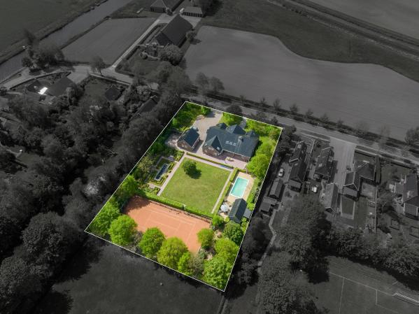 Deze riante villa uit 2007 verkeert in uitstekende staat van onderhoud en is gelegen op een indrukwekkend perceel van maar liefst 5.025 m². Een woning die indruk maakt door haar royale afmetingen, hoogwaardige afwerking en tijdloze uitstraling. Via de ruime hal met openslaande deuren bereikt u de royale living, waar het hoge plafond en de sfeervolle open haard meteen in het oog springen. Dit is een heerlijke plek om te ontspannen of gasten te ontvangen. Aangrenzend bevindt zich de prachtige woonkeuken, het kloppend hart van de woning, waar koken en samenzijn moeiteloos samenkomen. Op de begane grond vindt u daarnaast een comfortabele werkkamer, een dedicated listening room en een royale master bedroom met een luxe badkamer en suite, wat deze woning ook zeer geschikt maakt voor gelijkvloers wonen. De verdieping biedt nog eens vier ruime slaapkamers en een tweede moderne badkamer. Met in totaal vijf slaapkamers en twee badkamers is er volop ruimte voor een gezin, maar ook voor stellen die graag royaal en comfortabel wonen. De fraai aangelegde achtertuin vormt een waar buitenparadijs. Hier geniet u van meerdere terrassen, een tennisbaan en een verwarmd zwembad. Het biedt volop mogelijkheden om te ontspannen, te recreëren of sportief bezig te zijn in uw eigen tuin. Parkeren is geen enkel probleem dankzij de dubbele garage en de ruime oprit met plaats voor meerdere auto’s. Kortom, een unieke villa waar luxe, ruimte en woongenot samenkomen op een uitzonderlijk mooi perceel.