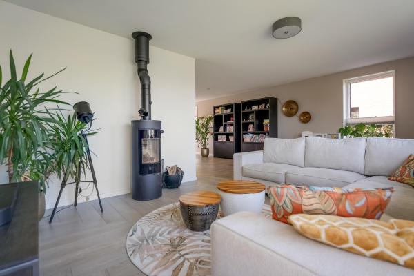 Modern vrijstaand woonhuis uit 2020 met riante tuin aan het water en een prachtig uitzicht over het Woldmeer!Deze prachtige en energiezuinige woning is gasloos gebouwd en voorzien van een warmtepomp en combineert comfort, licht en ruimte op een manier die meteen een gevoel van thuiskomen geeft. Op de begane grond bevindt zich een lichte en royale living met een moderne open keuken en een hoogwaardige stenen vloer met vloerverwarming. De openslaande deuren geven toegang tot de fraai aangelegde achtertuin op het zuidwesten, waar u volop geniet van zon, rust en privacy. Op de eerste verdieping vindt u vier slaapkamers en een moderne badkamer. De slaapkamers zijn tevens voorzien van vloerverwarming die per kamer een thermostaat hebben. Via de vaste trap bereikt u de tweede verdieping voorzien van een vijfde slaapkamer met ensuite een 2e badkamer en een multifunctionele open ruimte met vaste kasten wand. Van deze ruimte is eenvoudig een zesde slaapkamer te realiseren. De tuin is sfeervol ingericht met meerdere zitplekken, waarvan een deel overdekt, zodat er altijd wel een fijne plek in de zon of schaduw te vinden is. Ook vindt u hier een heerlijke buiten–barrel sauna, waardoor recreëren aan huis eveneens mogelijk is. Helemaal achterin grenst de tuin aan het water, met een eigen steiger en terras: ideaal om te genieten aan het water, of om te suppen en kanoën. Aan de voorzijde van de woning kijkt u blijvend vrij uit over het meer, waardoor het huis een unieke en ongeëvenaarde beleving van vrijheid en ruimte biedt. Een bijzonder fijn gezinshuis op een prachtige plek!