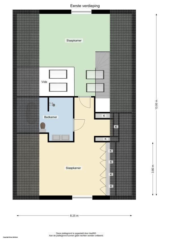 Open verdieping met vide, flexibel in te delen ruimte met mogelijkheid tot realiseren van slaapkamers.