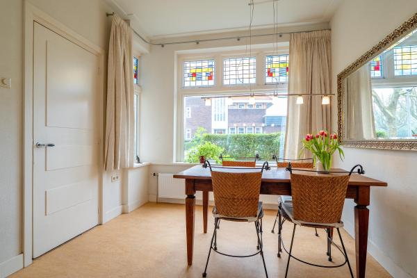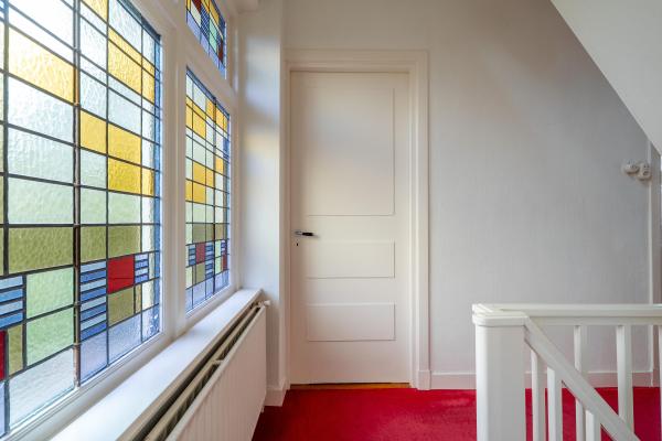 Deze charmante en karakteristieke twee-onder-een-kapwoning uit 1928 heeft sfeer behouden door authentieke details. De originele glas-in-loodramen zijn door de jaren heen met zorg behouden gebleven. Het huis is ten dele aangepast aan deze tijd. Zo is de keuken vernieuwd en uitgebouwd en zijn de begane grond en de zolder gemoderniseerd. Met drie verdiepingen en vier slaapkamers biedt het huis volop ruimte.