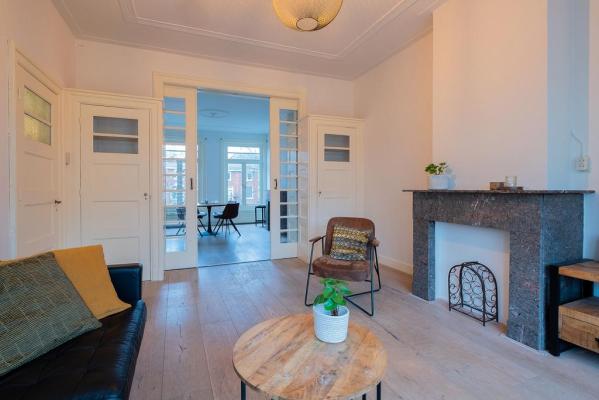 Deze prachtig onderhouden bovenwoning is een oase van sfeer en modern comfort. Met een ruimte van ongeveer 142 m² is deze woning verrassend ruim. Bijna alle charmante elementen uit de jaren '20, zoals hoge plafonds, suitedeuren en schouwen, zijn bewaard gebleven en geven de woning een karakteristieke warmte. Daarnaast biedt de woning twee balkons aan de achterzijde, op het noordwesten gelegen.