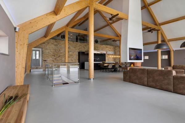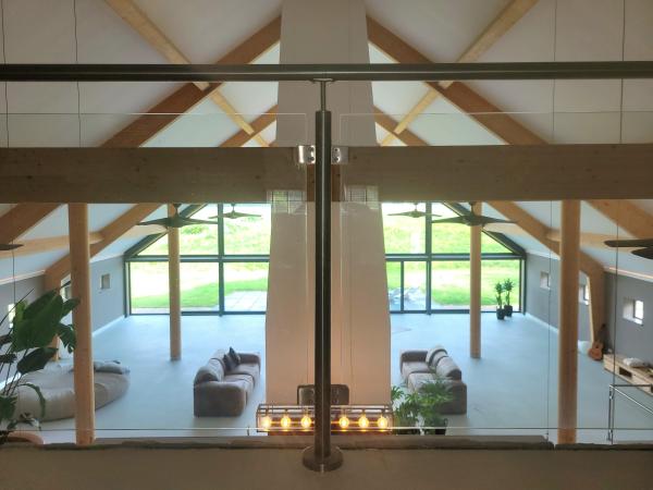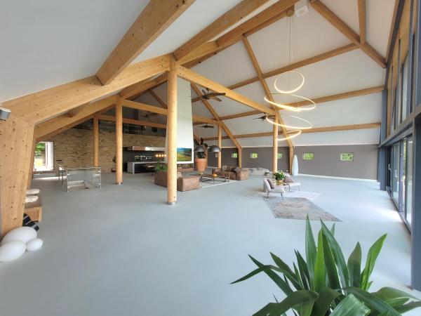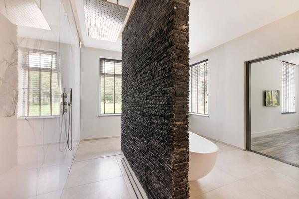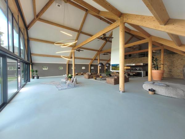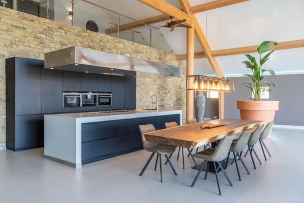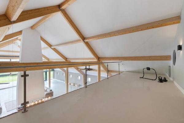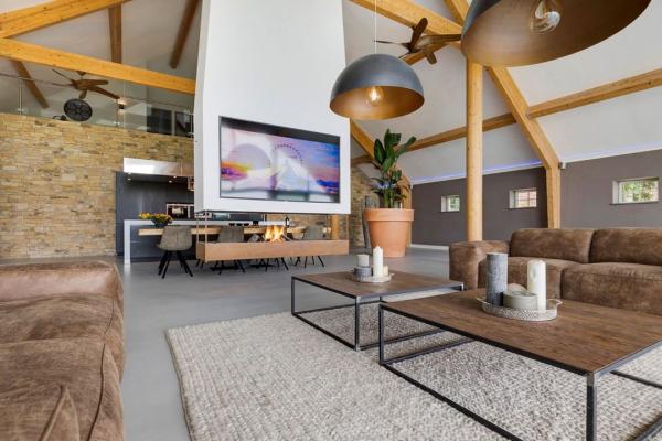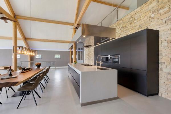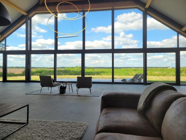 Deze exclusieve woonboerderij, opgeleverd in 2022, combineert moderne luxe met verfijnde designelementen. Geen detail is over het hoofd gezien bij de realisatie van dit indrukwekkende bouwwerk. De afwerking is van topniveau, met materialen zoals roestvrij staal, mozaïek en natuursteen. Zodra u binnenstapt, valt de royale living direct op. De ruimte ademt luxe en is voorzien van een open keuken met een imposant kookeiland van 3,80 meter, met als kers op de taart: een zwevende open haard. De boerderij beschikt over vier ruime slaapkamers, elk met een eigen en-suite badkamer, verdeeld over zowel de begane grond als de eerste verdieping. Dit maakt het geheel bijzonder geschikt voor gezinnen of stellen die op zoek zijn naar ruimte en comfort. Ook aan ontspanning is gedacht. In het souterrain bevindt zich een heuse thuisbioscoop met zes zitplaatsen en een Turks stoombad, een ideale plek om volledig tot rust te komen. De achtergevel, helemaal voorzien van grote raampartijen en een schuifpui, zorgt voor een zee aan natuurlijk licht en een panoramisch uitzicht over de uitgestrekte akkerlanden. Hier geniet u dagelijks van prachtige zonsondergangen en kunt u regelmatig wild spotten, zoals reeën, hazen, vossen en fazanten.