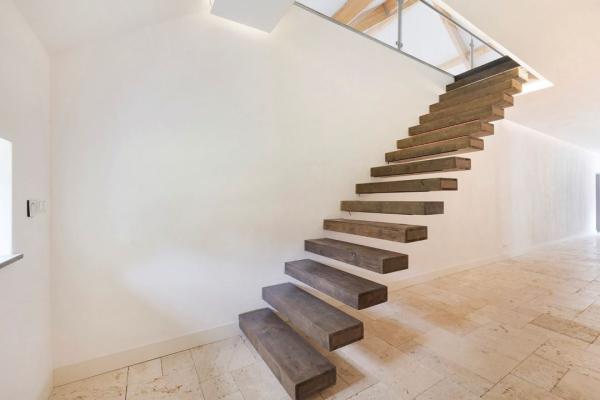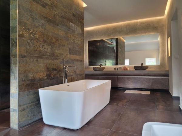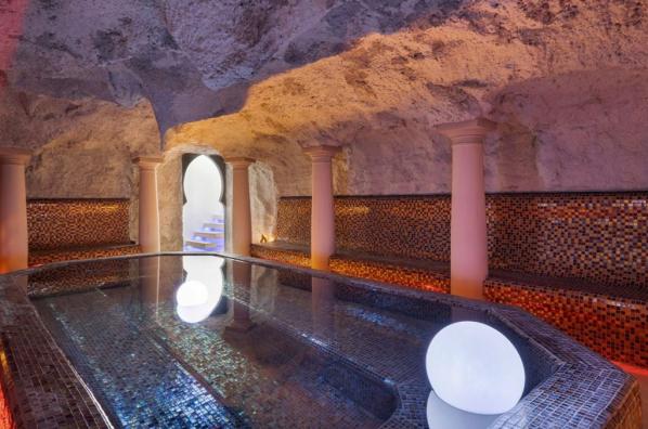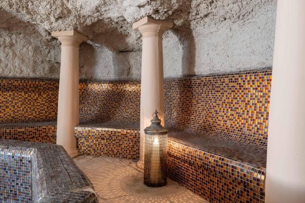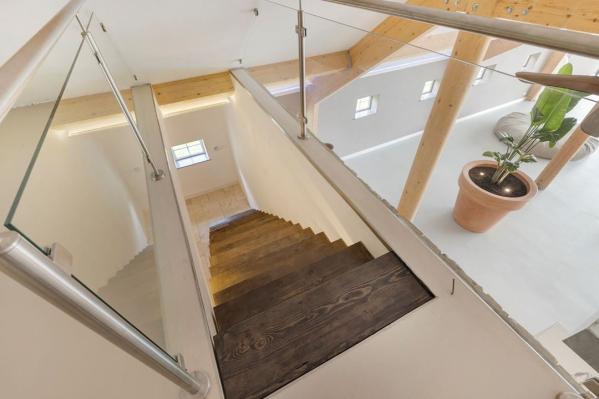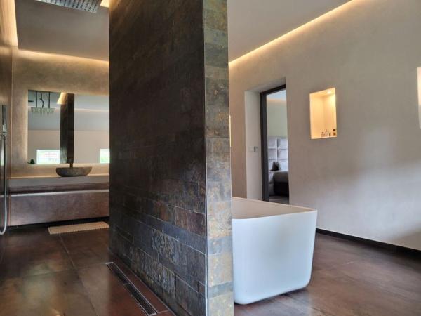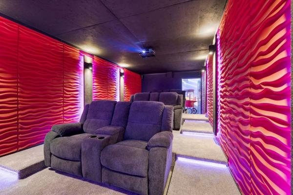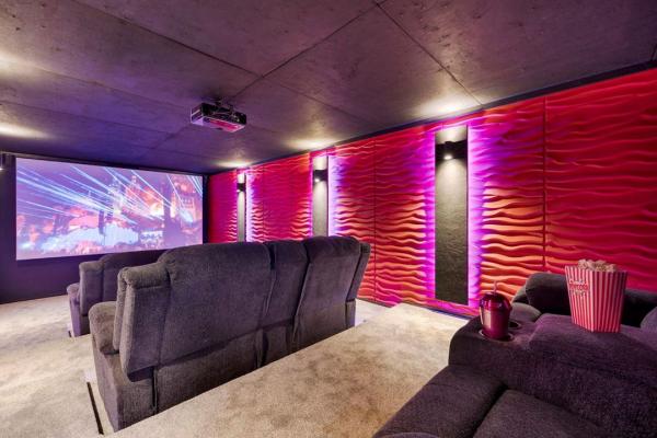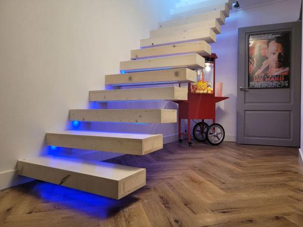 Toegang vanuit de living via een LED-verlichte zwevende trap. Hier bevindt zich de technische ruimte, de bioscoop en riant Turks stoombad.