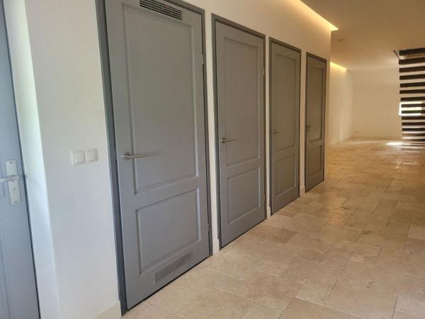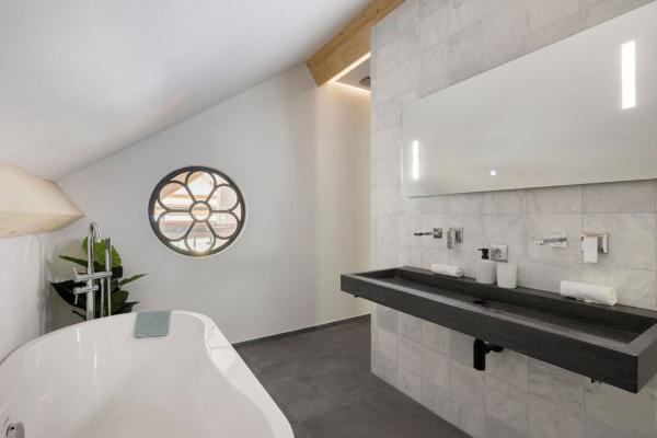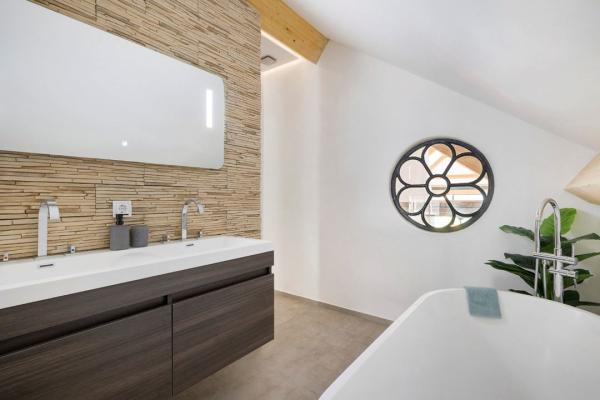 Ruime vide die naar eigen wens kan worden ingericht als open office of fitnessruimte, alsmede twee slaapkamers, elk met een eigen aangrenzende badkamer met dubbele wastafel, ligbad, regendouche, toilet en bidet.