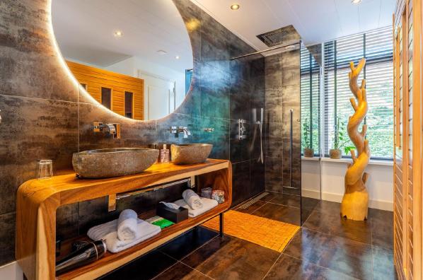 •Twee stijlvolle gastenkamers, elk met eigen badkamer (waarvan één met infraroodsauna)