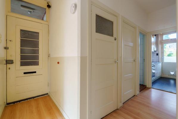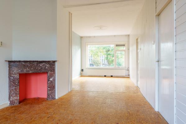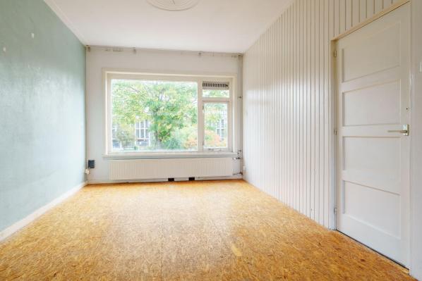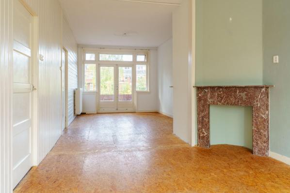 Dit voormalige 3-kamerappartement, gelegen op de eerste verdieping, biedt een lichte woonkamer met erker aan de voorzijde en openslaande deuren naar het balkon aan de achterzijde. De woning beschikt verder over een dichte keuken, een slaapkamer en een ruime badkamer. Diverse authentieke jaren '30 details, zoals twee marmeren schouwen en originele paneeldeuren, geven het appartement extra karakter. Zowel vanuit de woonkamer als de keuken heeft u toegang tot het brede balkon aan de achterzijde, gelegen op het noordwesten. Via een afgesloten brandgang is een eigen houten berging aanwezig.